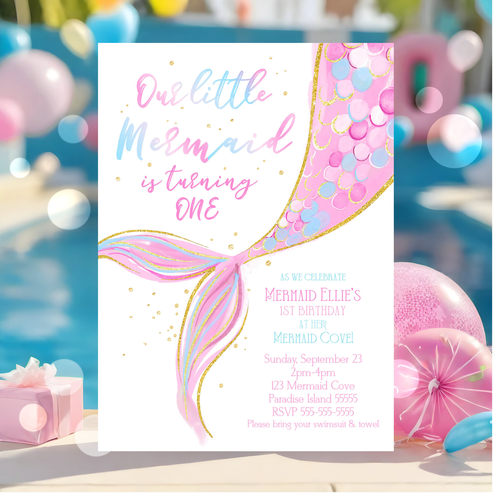 These whimsical mermaid birthday invitations capture the essence of a magical mermaid adventure, promising an unforgettable birthday celebration filled with wonder and enchantment.
